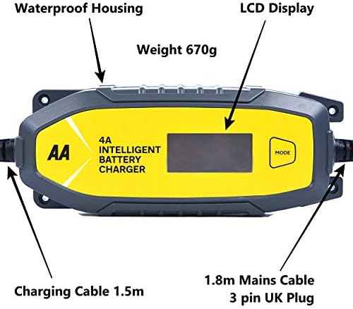 Read the user manual before first use of the chargerFitted with a UK 3-pin plugFully protected against sparks, short circuits, overheating, and reverse polarityWater and dust resistance (IP65)Colour-coded battery clampsNo expertise required