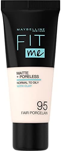 Contents: 1x Maybelline Fit Me Foundation, Matte & Poreless, Full Coverage Blendable Normal to Oily Skin, Shade: 095 Fair Porcelain, 30ml