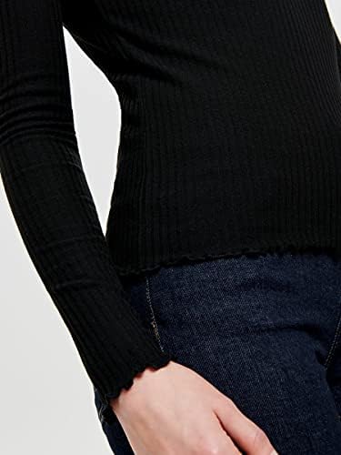 A convenient basic-classic and a great combination talent, the longsleeve by ONLY. The tight fit the small standing collar and the soft Viscose blend transform the shirt into a comfortable every day highlight with a great wearing comfort.
