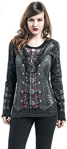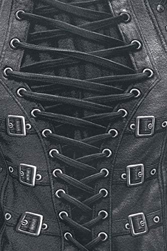 A beautifully realistic corset design with lace and buckle detailing to the sleeves. Black ribbons criss-crossing the back complete this gothic stroke of pure seductive elegance.
