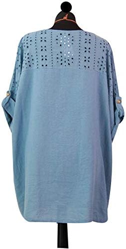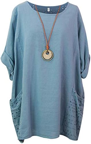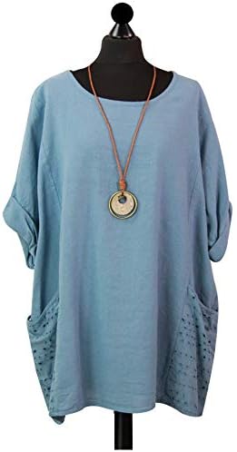 Ladies Plain Cotton Top Womens Lagenlook Tunic Baggy Dress Shirt Lace Pockets